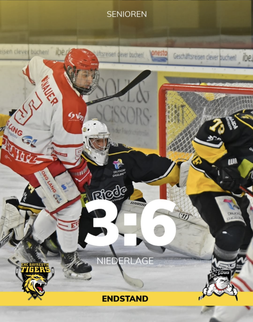 Zu Beginn hatten die Gäste zunächst Probleme, ihr Spiel aufzuziehen. Der EHC zeigte sich mit einigen schönen Kombinationen und überfallartigen Konterangriffen mehrfach gefährlich, weshalb auch der Führungstreffer durch Philip Endres durchaus in Ordnung ging. Nach dem zu diesem Zeitpunkt etwas schmeichelhaften Ausgleich für den EVP verpassten es unsere Bayreuther Jungs, im Powerplay wieder in Führung zu gehen, wurden ihrerseits eiskalt ausgekontert und gerieten so etwas unglücklich in Rückstand. Dieser Shorthander war auch der Wendepunkt in der unterhaltsamen Partie, denn von nun an war Pegnitz das dominantere Team und legte mit dem dritten Treffer kurz vor der ersten Pause nochmal nach. Im zweiten Abschnitt blieben die Gäste vor den knapp 500 Zuschauern spielbestimmend und zogen zwischenzeitlich durch zwei weitere Tore mit 5:1 davon. Das 2:5 durch Payton McDonald ließ aber nochmal Hoffnung aufkeimen. Die endgültige Entscheidung fiel dann in 45. Minute, als der Pegnitzer Konti Ales Furch mit seinem dritten Tor an diesem Abend den Deckel drauf machte. Die Bayreuther ließen sich trotzdem nicht hängen und konnten kurz vor Schluss durch Stephan Trolda zumindest noch das 3:6 markieren.